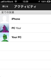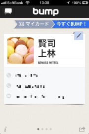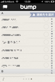 これは今までにBUMPしたことのある人かな、デバイスも表示されるみたいです。よくやりとりする人とここを使ってもやり取りできるようですよ。