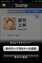 「BUMP」はコードを使わずに(使うものもあるけど)写真の送受信ができます。