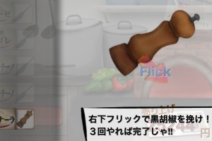 こしょうをかけますが、3回以上やるつもりでフリックしないと遅れちゃいます。
