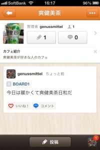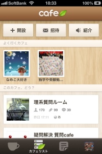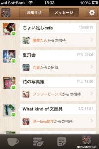 他のカフェから招待されたり、自分のカフェ内での投稿にコメントがあると更新通知があります。
