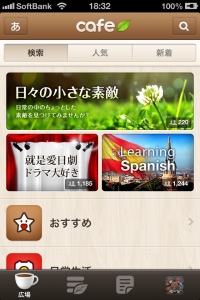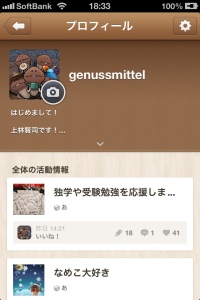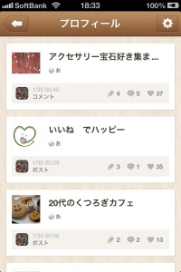 ここは自分のホーム画面です。自己紹介や自分が入っているカフェが並んで表示されます。