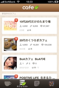 自分が参加中のカフェで更新があると赤い「N」が表示されます。NewのNです。