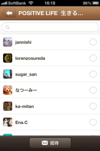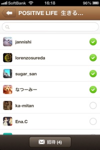 タップしてチェックマークがつくとその人たちをまとめて招待できます。
