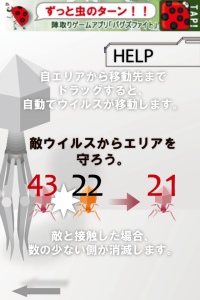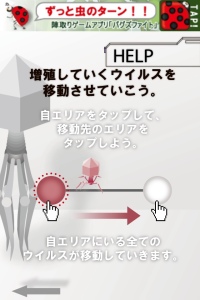 赤紫色の自分の陣地を増やしていくだけのゲームです。時間が経過するごとに自分の陣地にいるマクロファージが増えるので、その量で他の陣地に戦いを挑みます。
