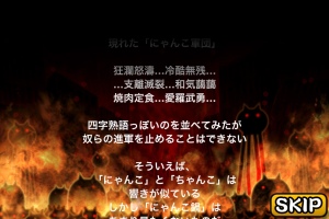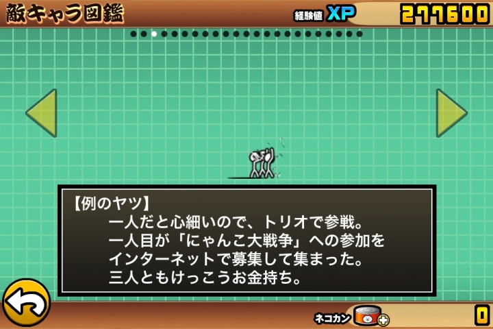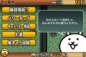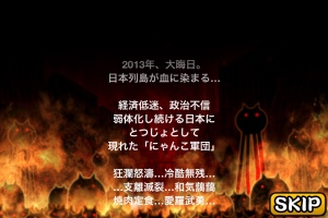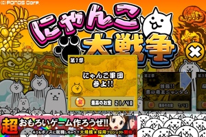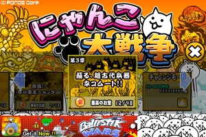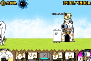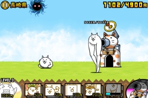 スマホ内では「にゃんこ」と表示されているこのゲーム。簡単に描かれたネコが闘って日本を制圧していくというゲームです。色んな種類のにゃんこ顔した兵たちが敵と闘います。