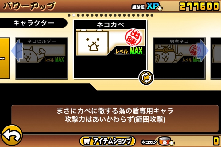 このキャラ「ネコカベ」俺のお気に入りです。防御に関しては一流!